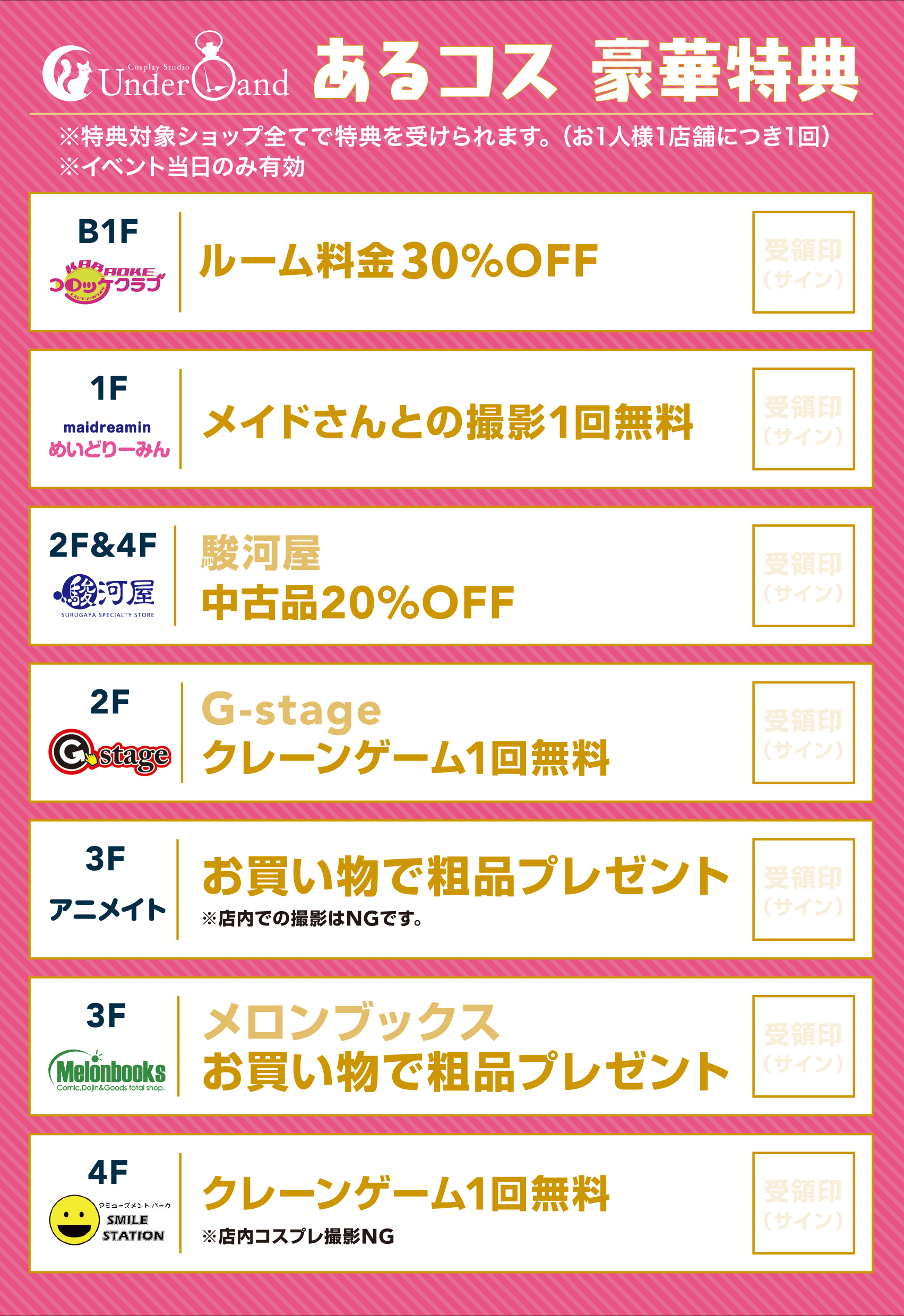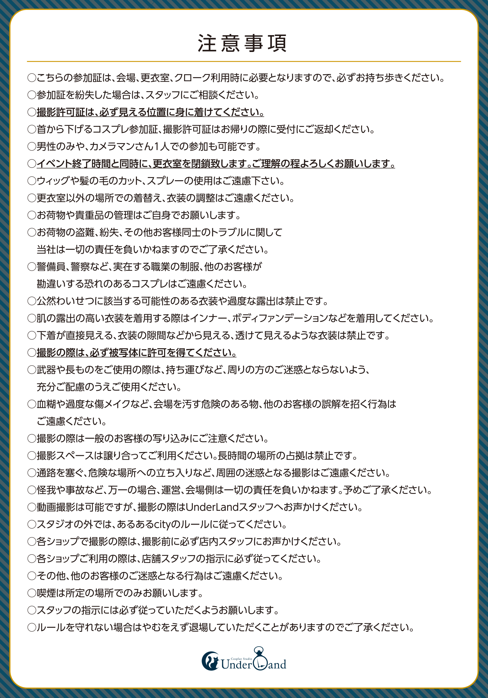 参加予定表:公式X(@UnderLand_cos)にてイベントのリプにポスト致します。